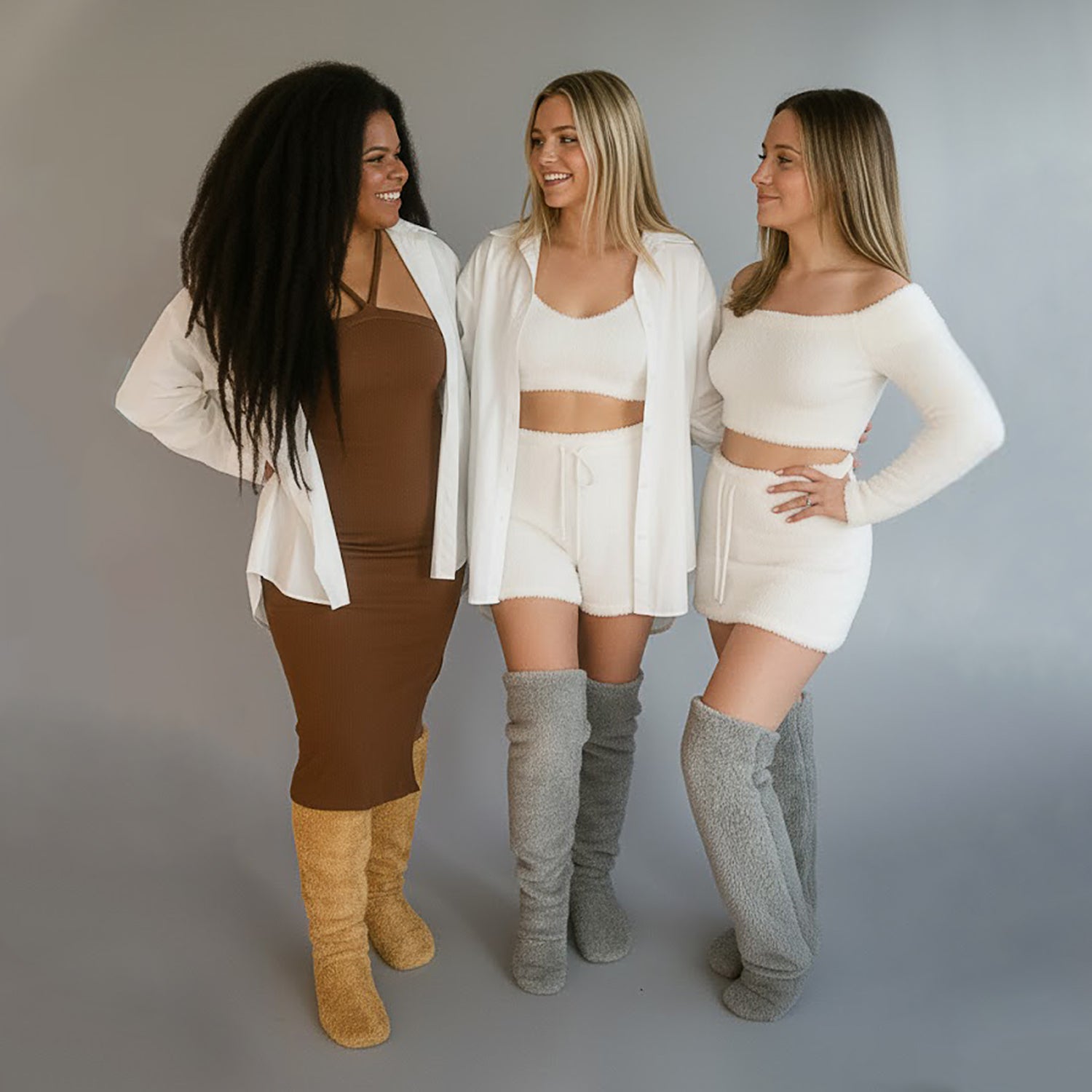 Stay warm and comfortable in the UK's cold months with our ultra-soft fluffy over-knee socks. Perfect for lounging, sleeping, or pairing with winter outfits.